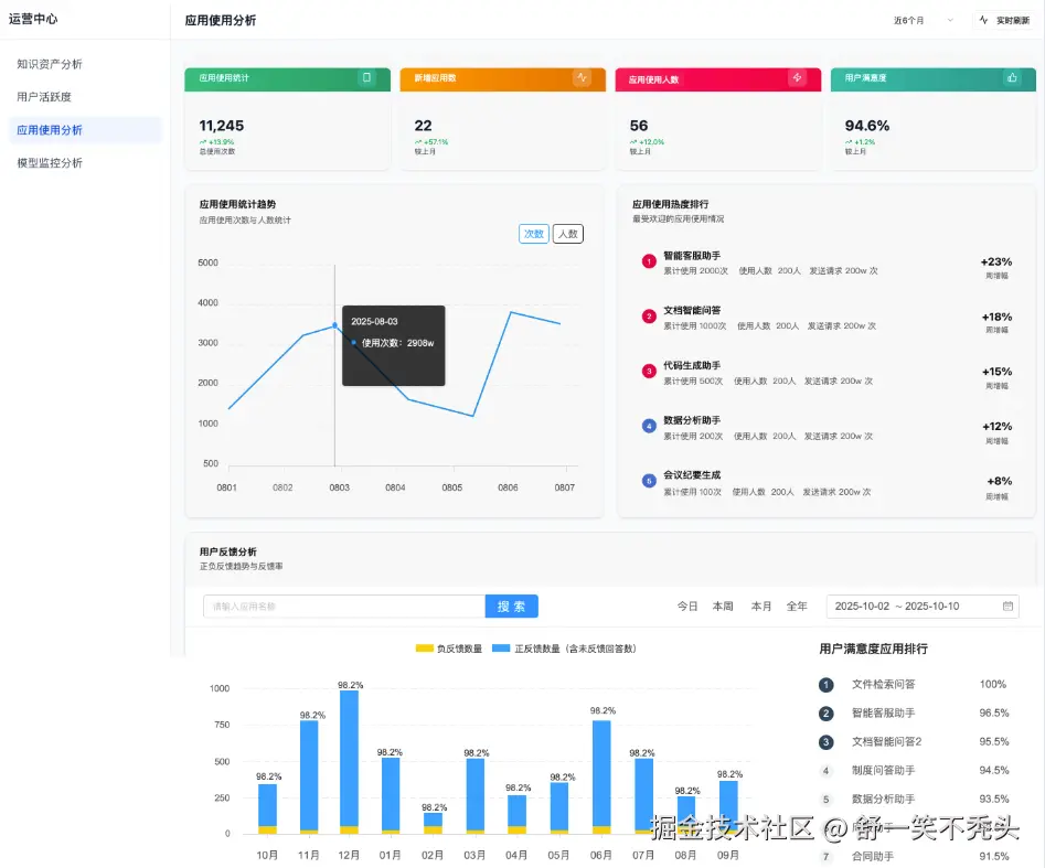 - 性能监控:实时跟踪响应延迟、API调用量,确保系统稳定。