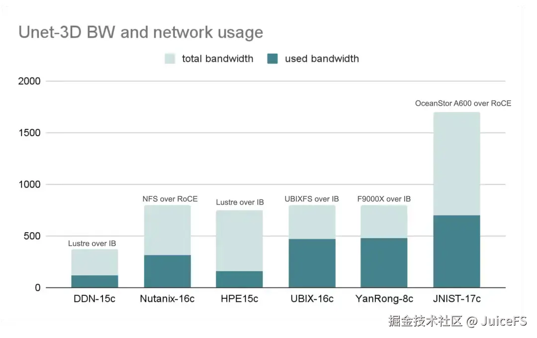 3D-Unet:JuiceFS 以最高带宽与带宽利用率领跑同类系统