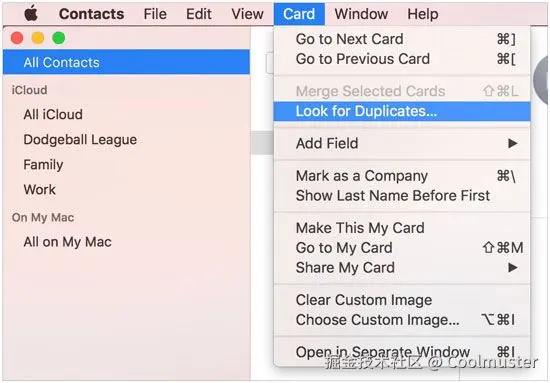 以下是在Mac上的 iCloud 中删除重复联系人的方法: