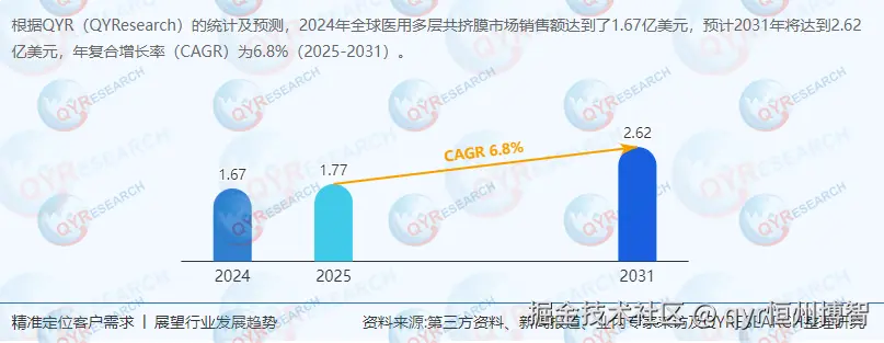 市场规模:全球医用多层共挤膜市场将保持6.8%的CAGR,2031年突破2.6亿美元,其中生物膜占比将提升至45%;