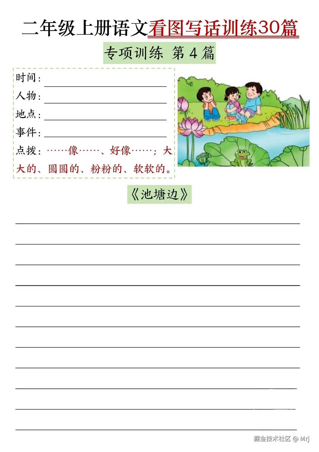 二上语文看图写话训练30篇(含范文60页 Mrj 2025-09-18 62 阅读1分钟 二上语文看图写话训练30篇(含范文60页) (温馨提示:文末有完整电子版领取方式) 二上语文看图写话训练30篇(含范文60页) 链接:pan.quark.cn/s/95cbceb1d…