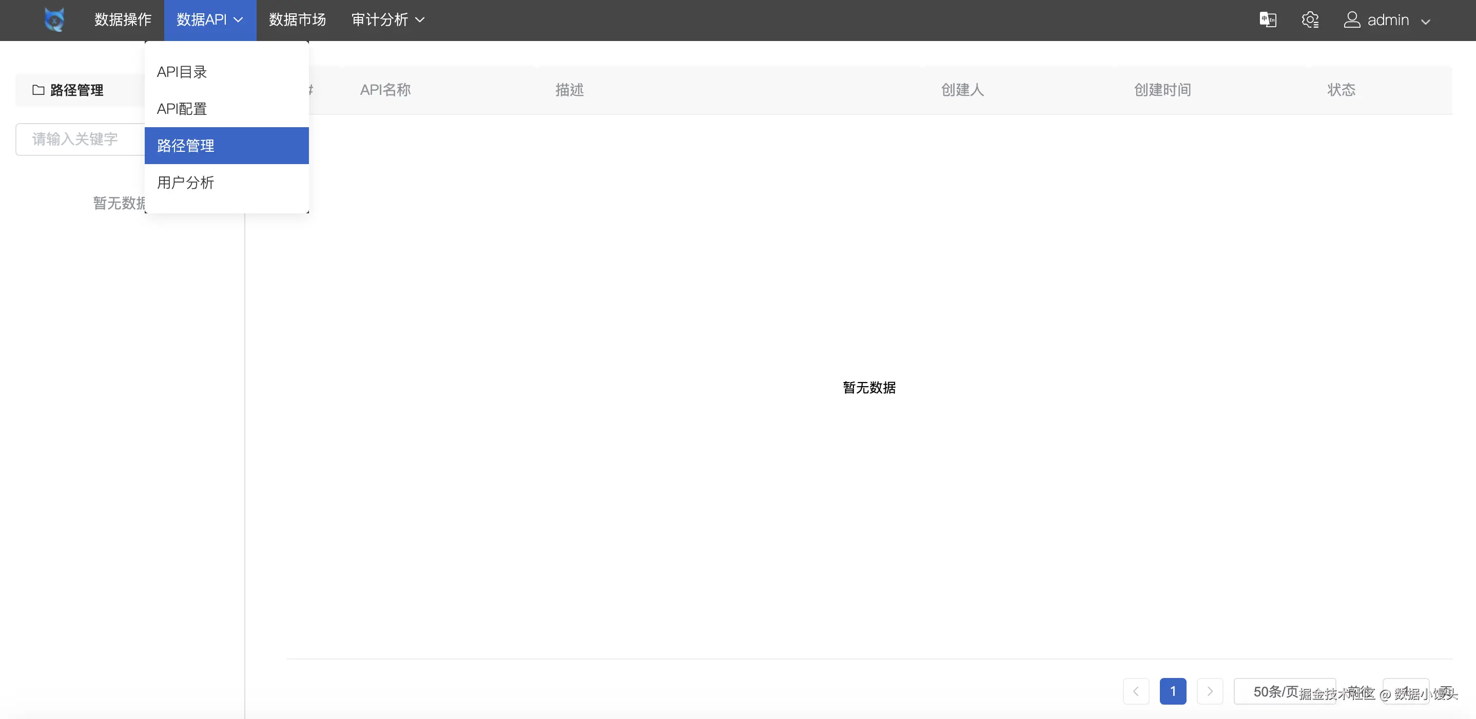 - 登录后,进入平台的 “数据API” 页面,创建API路径和业务目录。