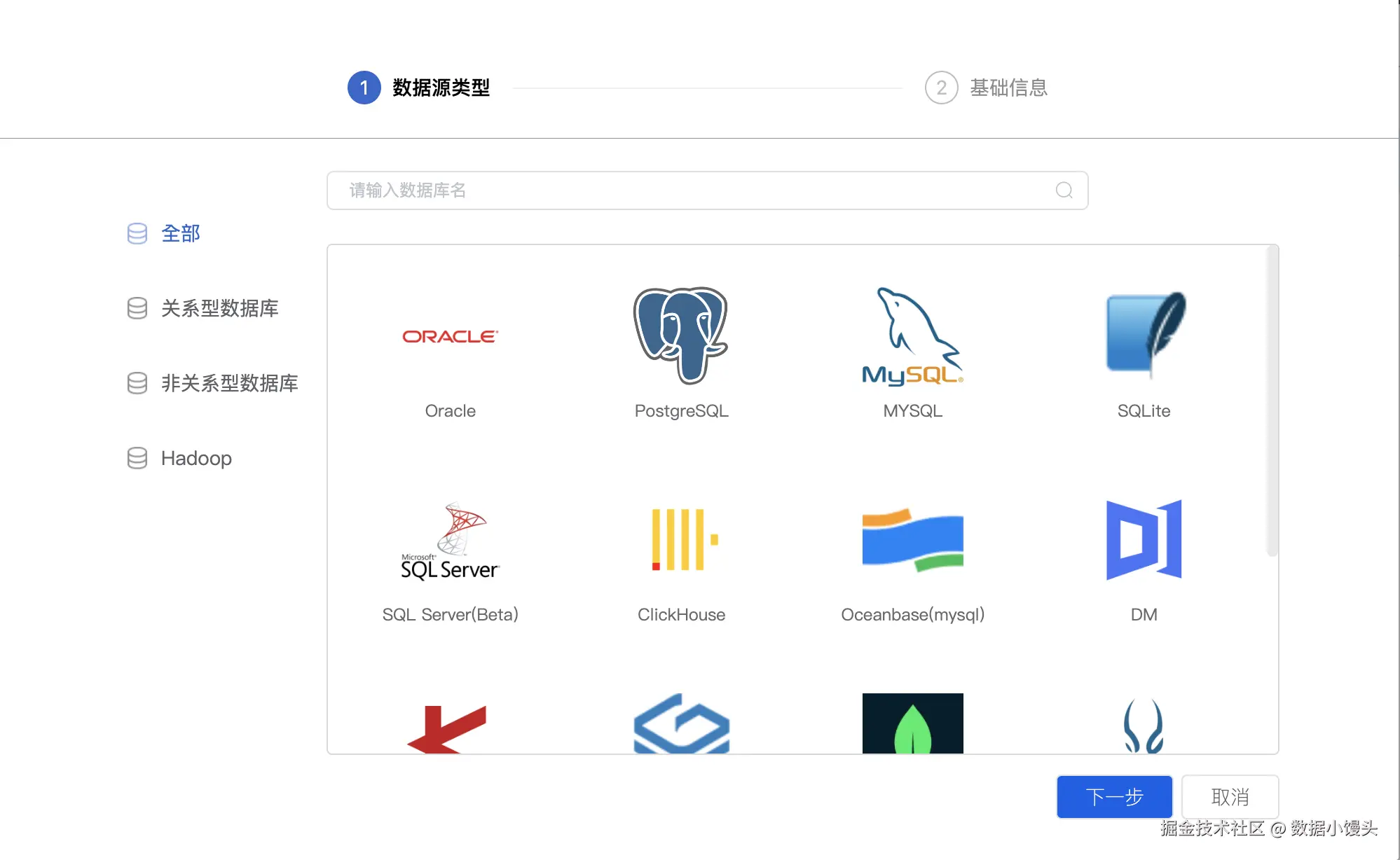 - 输入数据库的相关信息,包括数据库类型、主机地址、端口号、用户名和密码,点击 “测试连接” 确认数据库连接成功。