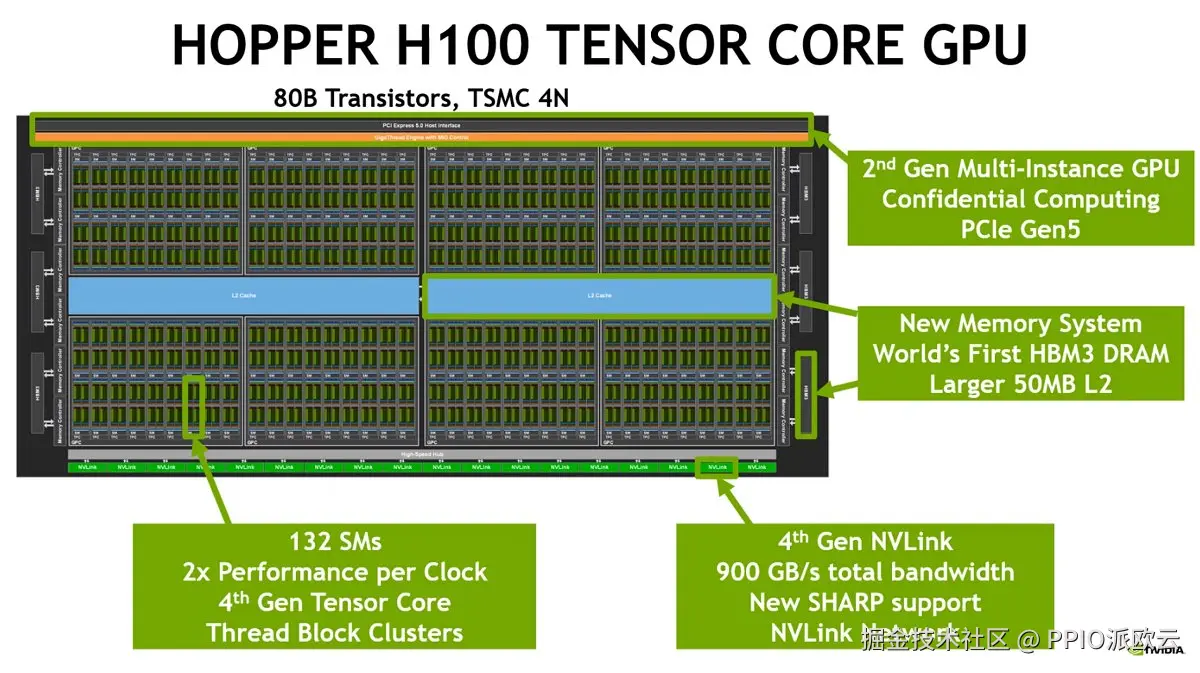 NVIDIA H100的强大性能源于其全新的Hopper架构。
