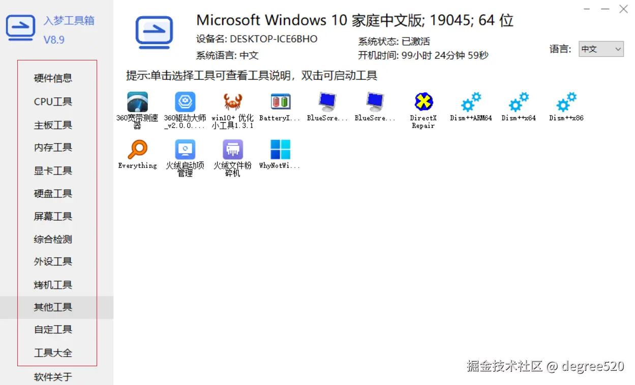 解压后双击 exe 按向导完成安装。首次打开,首页即显示系统激活状态、开机时间、屏幕分辨率、处理器及内存等基础信息,方便快速了解电脑概况。