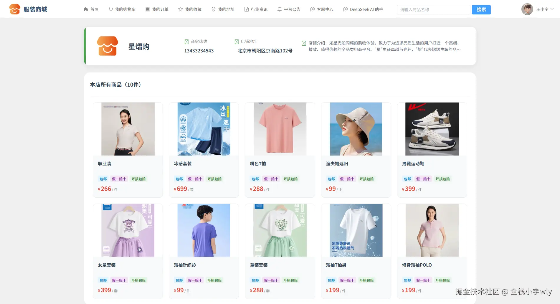 本系统整体聚焦服装垂直细分领域,支持商品多规格配置,具备强大的商品组织与销售能力,结合 AI 智能助手与在线客服功能,构建了一套交互性强、智能化高、扩展性好的现代服装电商平台,非常适合毕业设计和课程设计,功能亮点十足。