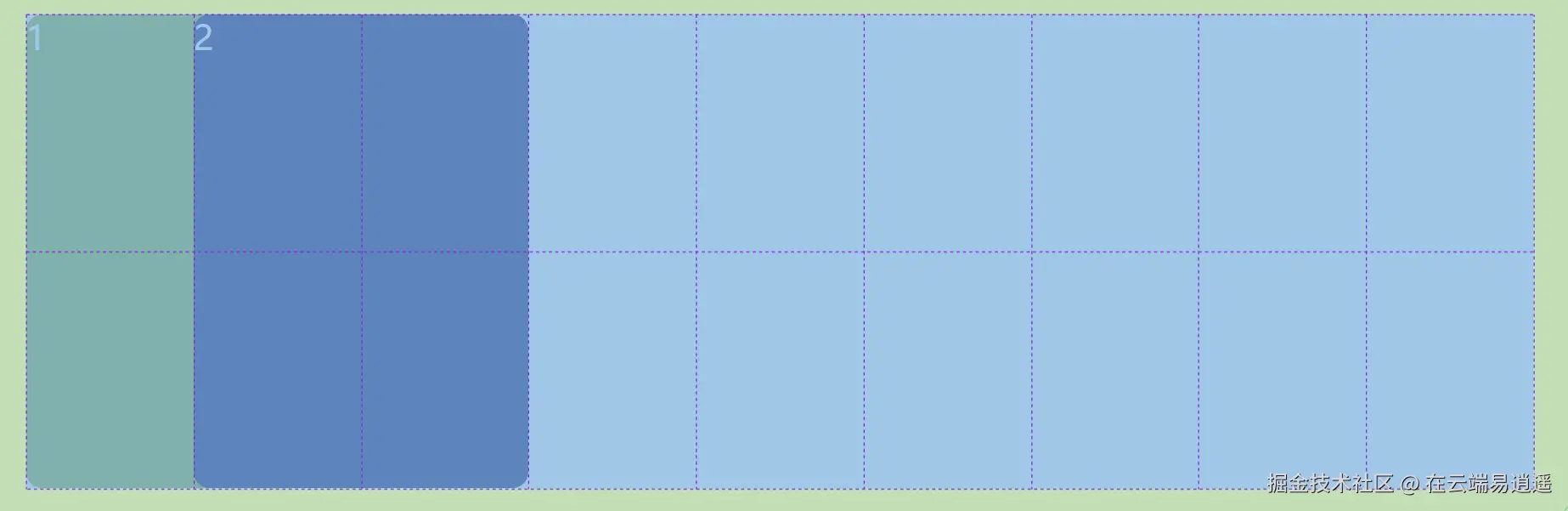 grid-column: 1 / 3; /* 相当于 start:1; end:3 */