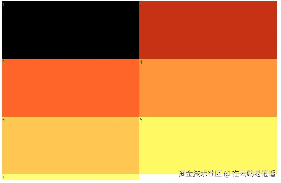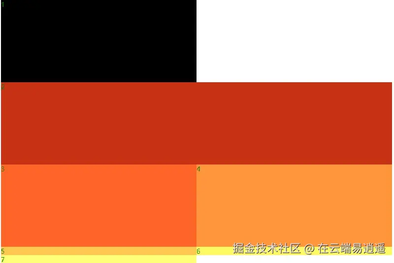 例如:一个元素占了2列,grid-auto-flow:row,则会有空隙。