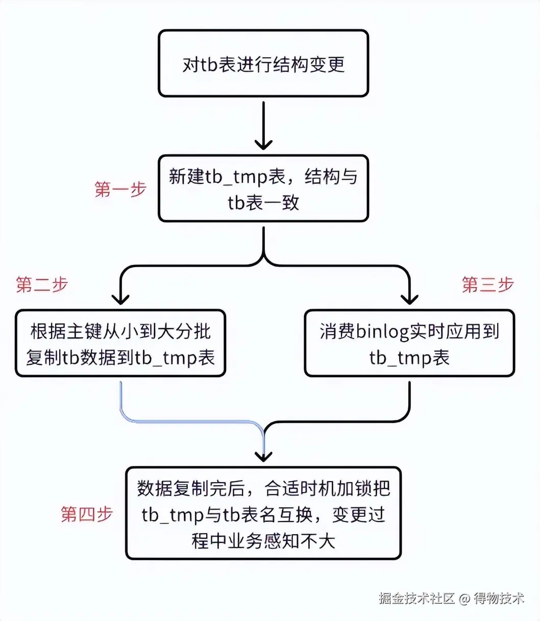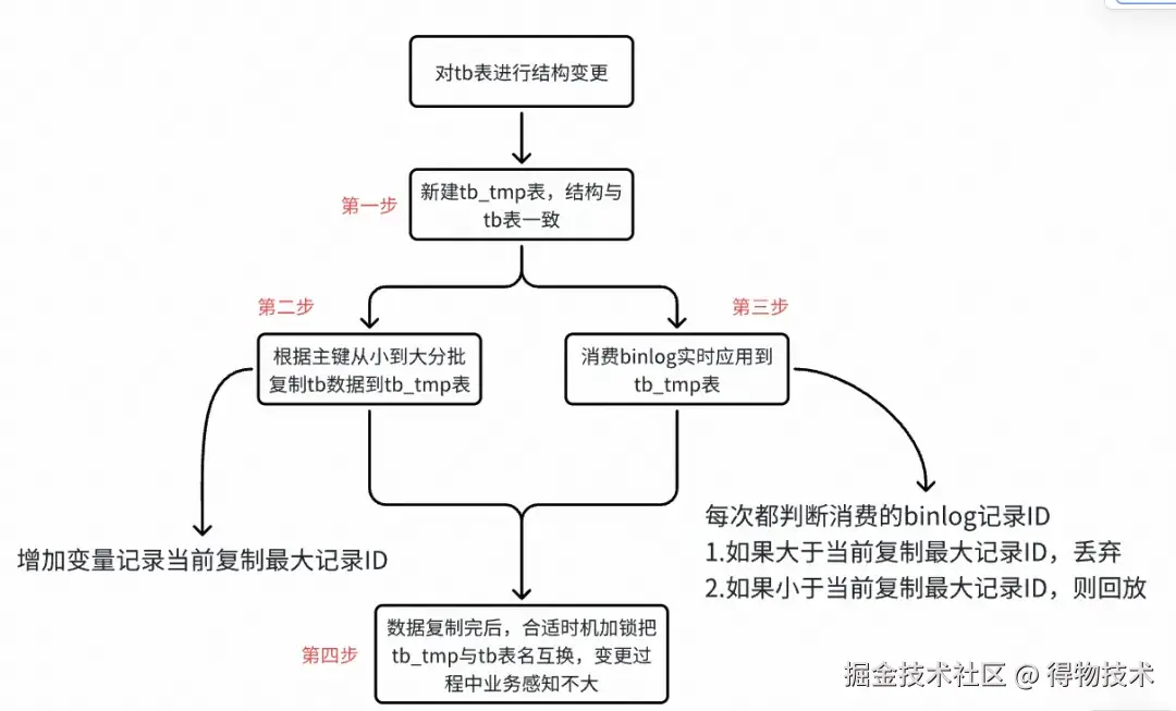 | alter table xxx engine=innodb变更流程 | 当前工具结构变更流程 |