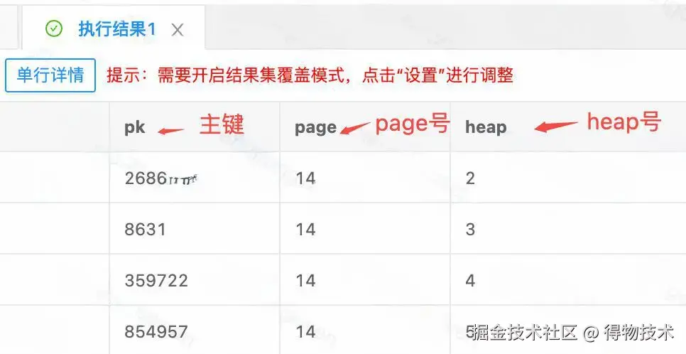 - 数据分析完后通过分析发现存储一条数据的页对应的记录的 heap 值基本都是 3,正常应该是 2,意味着这些页并不是一开始就存一条数据,而是产生了页分裂导致的。