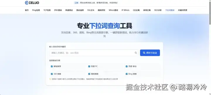 手动在多个搜索引擎中逐一输入关键词,然后记录下拉词,这无疑是低效且繁琐的。这时,一个专业的站长工具就显得尤为重要,而测罗(celuo.com) 正是为此而生。