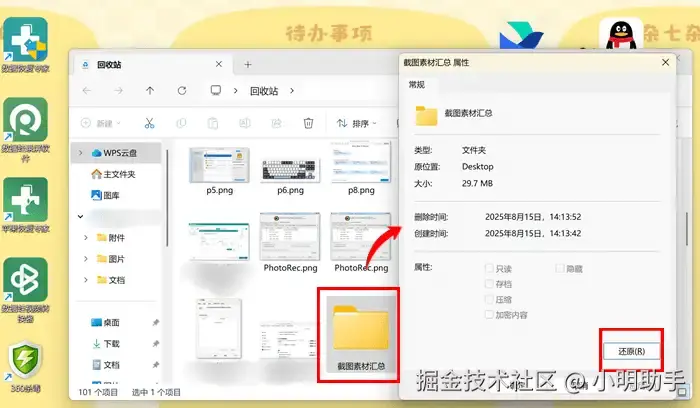 删除文件恢复妙招4:回收站还原文件