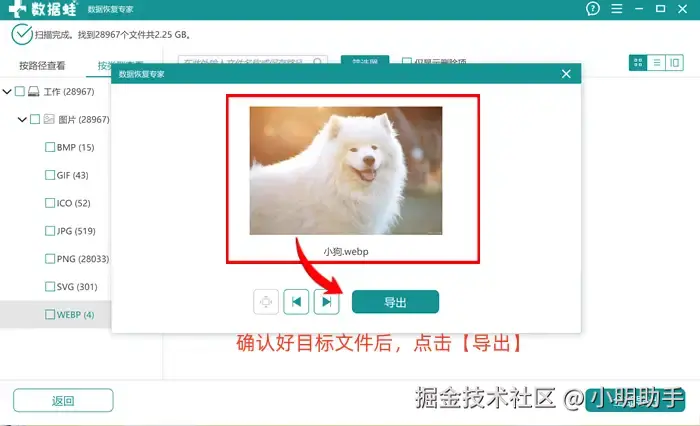 步骤2: 如果需要恢复的文件为图片,我们还能提前查看图片内容,确认为目标文件后再进行导出恢复;