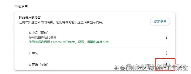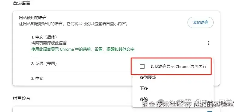 点击 “English (US)”后面的三个点 → 选择 “Display Chrome in this language” → 重启浏览器。