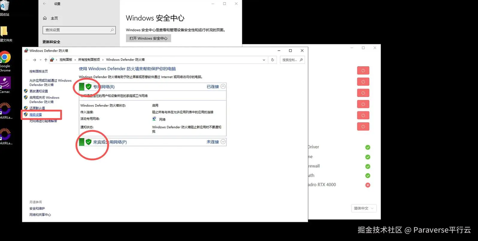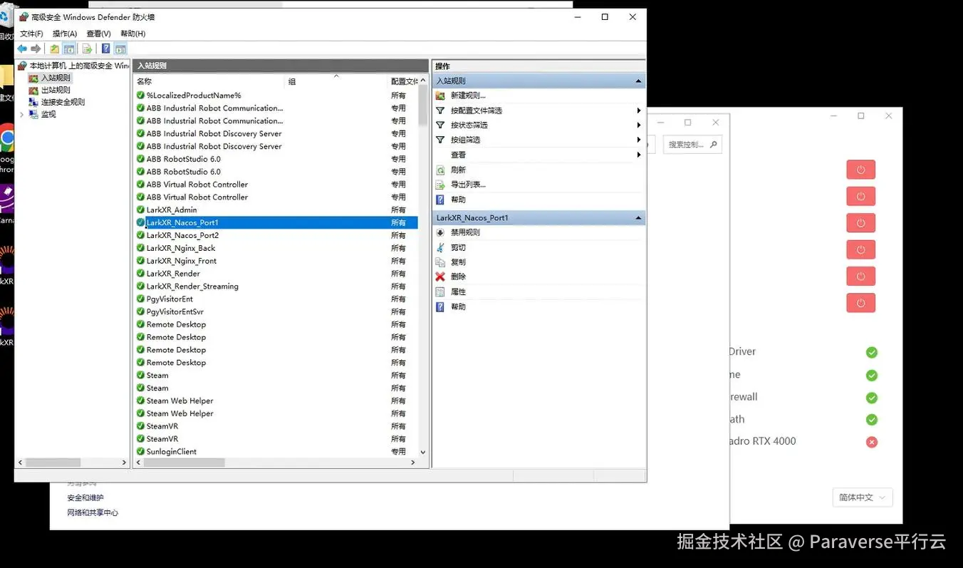 要求高的时候需要开启防火墙。启用防火墙后进入高级设置—入站规则,确保端口放行即可访问云渲染平台及推流后的3D应用。