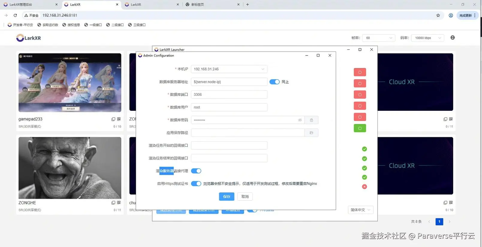 larkxr-center/application.properties中,注意LarkXR的版本需要升级到3.3.2.5及以上版本。配置如下: