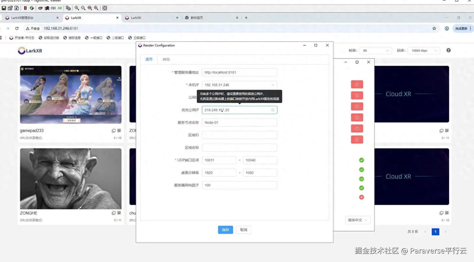 - 无固定公网IP,要使用实时云渲染平台LarkXR提供的代转发NAT服务:如办公网络,或家庭PC机作为云渲染服务器