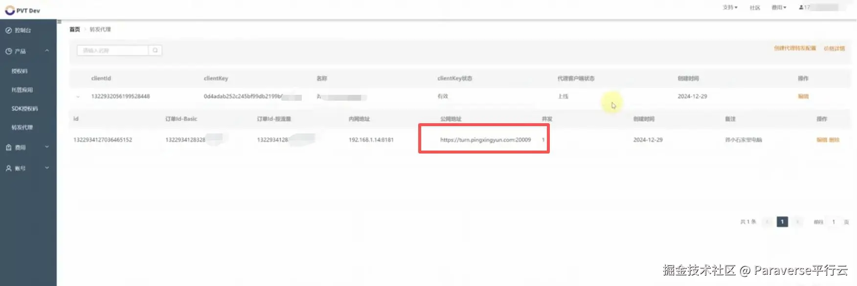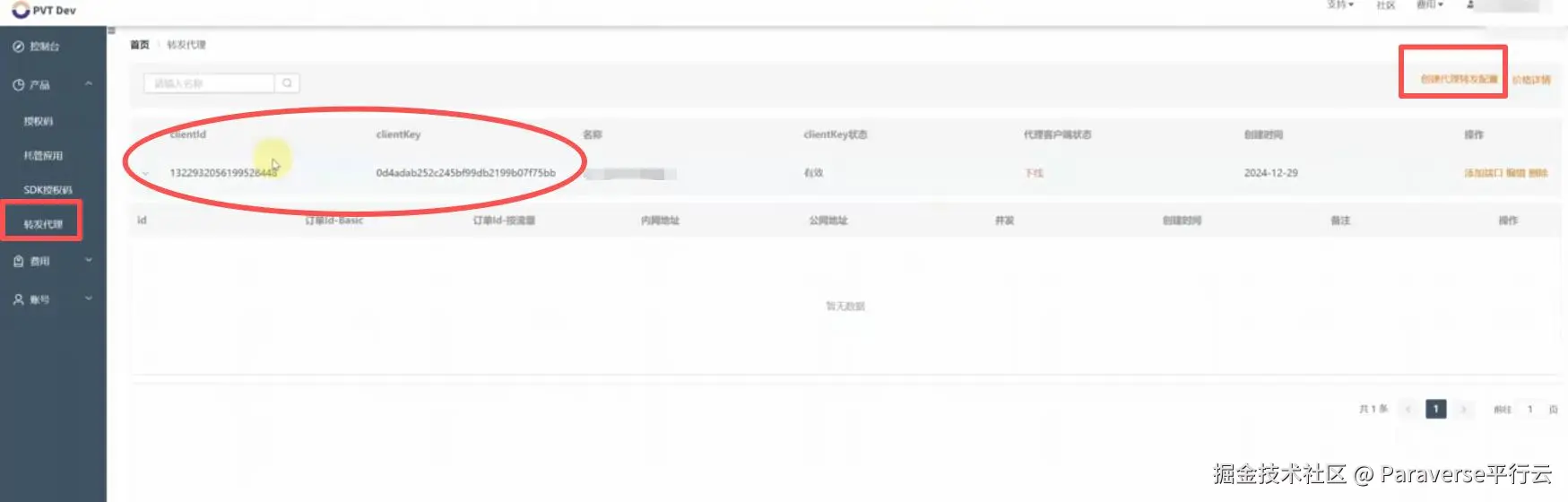 www.pingxingyun.com/console/#/ 以创建转发代理服务。 首先,您需要添加一个转发代理的Key,这需要您设定一个Key名称,通常以项目名称作为标识。 完成设置后,系统将生成内网穿透所需的clientId和clientKey信息。
