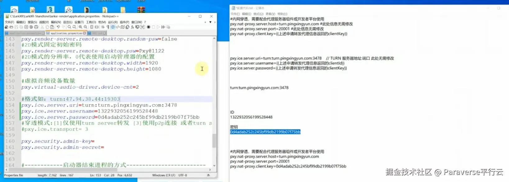- 配置LarkXR 渲染服务器 ICE Server 在 larkxr-render/application.properties 文件中增加以下配置: