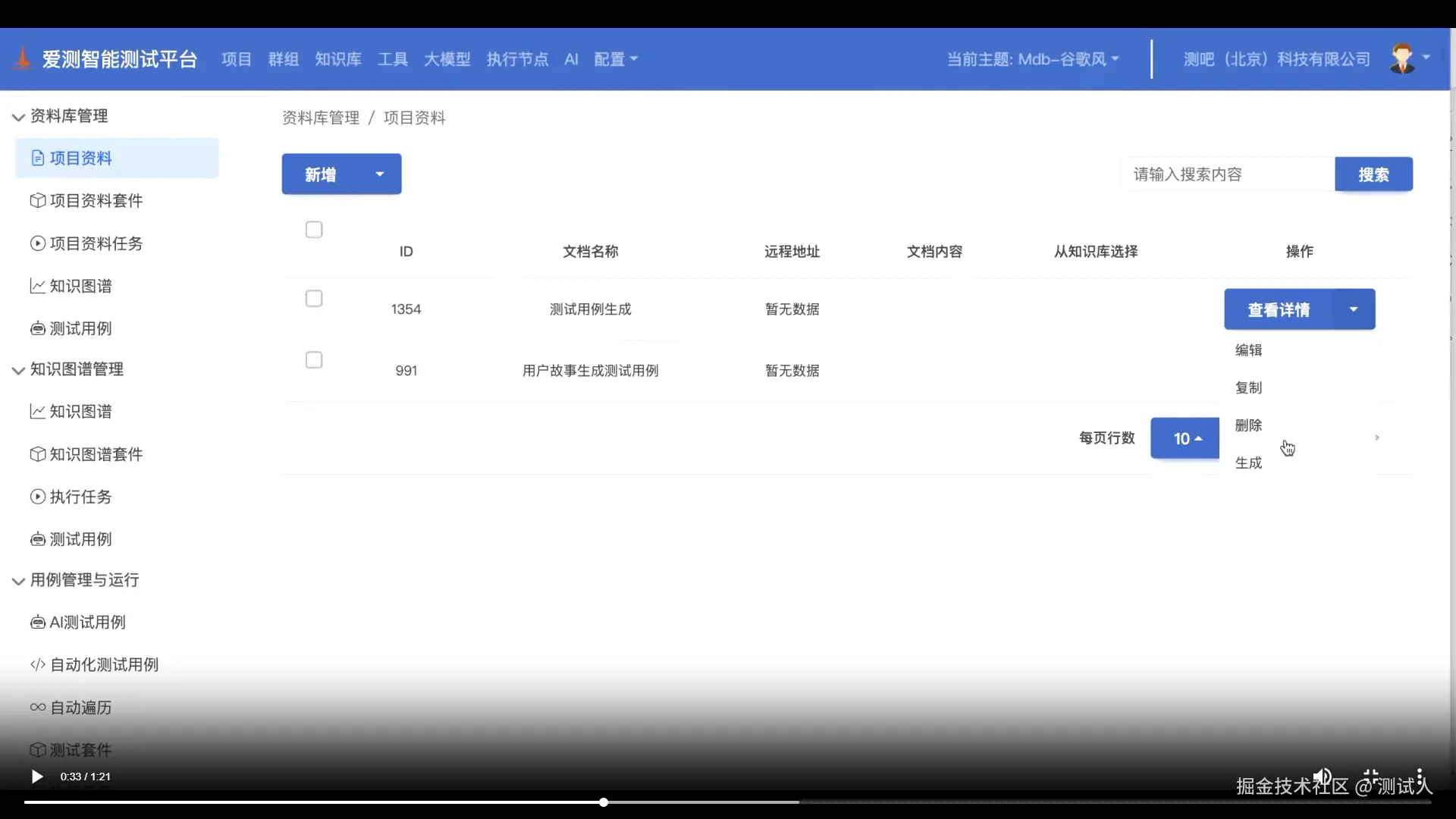 - 平台目前支持功能测试、接口测试用例生成。