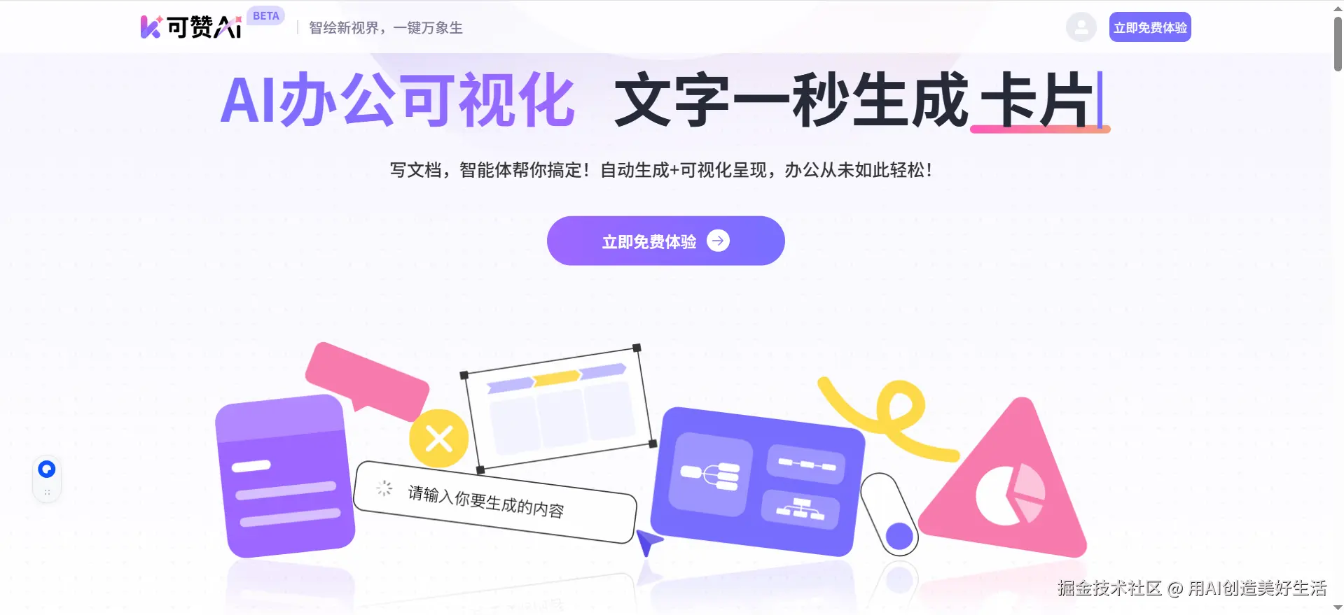在信息爆炸的时代,将复杂信息直观呈现的能力越来越重要。可赞AI专注于文本转可视化,让枯燥的文字和数据变得生动易懂。