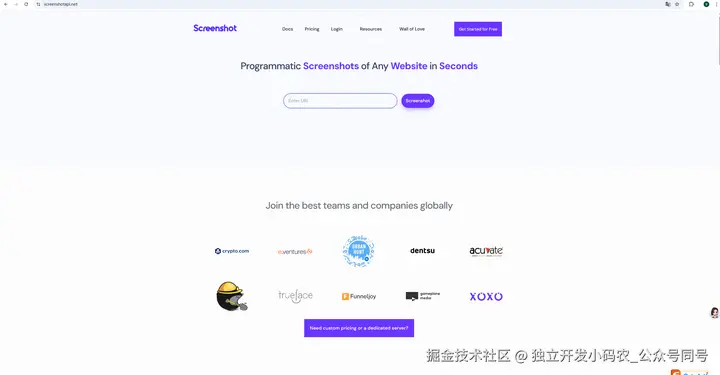 三、拆解成功案例盈利模式:ScreenshotAPI.net
