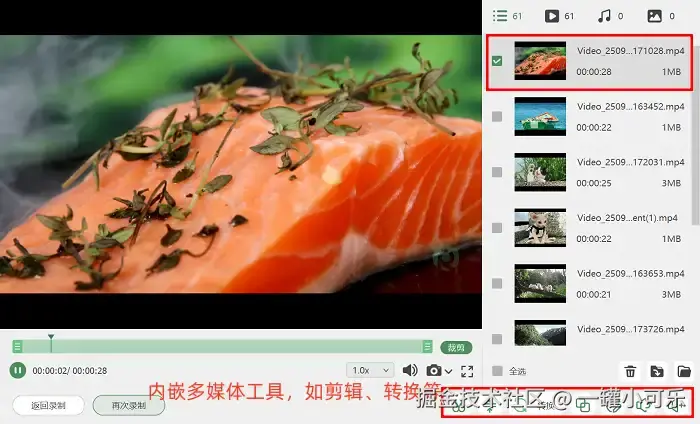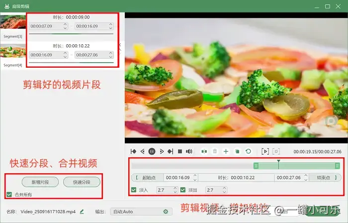 第3步:视频录完之后,要是你还想后期剪一剪,不用特意去找别的剪辑工具。直接用数据蛙录屏里的 “高级剪辑” 功能就行,它能快速把视频分成几段,还能给视频加特效啥的。