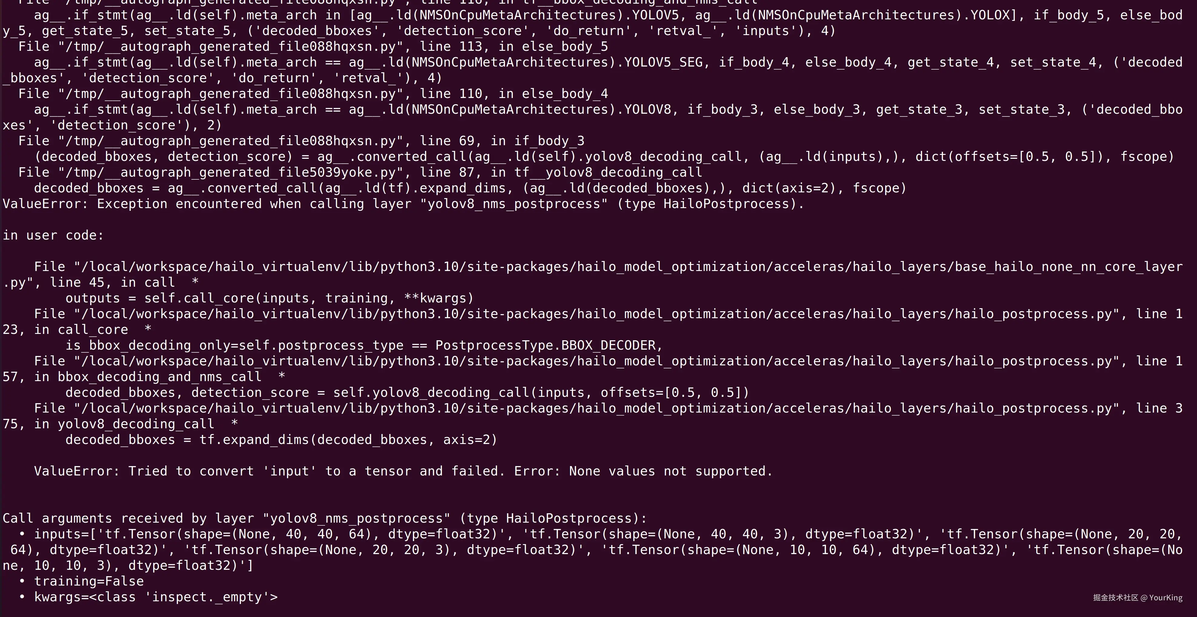 注意:--classes 参数值填写,需要根据训练的时候具体的情况进行设置,否则会报类似下图这样的错误。 遇到过可以使用 --classes 3 对模型进行训练(猜测是训练模型的时候,使用到了3种类型的数据)。