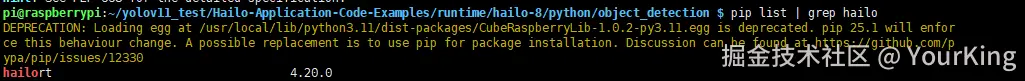 使用 pip list | grep hailo 命令,可以看到安装了Hailo相关的软件。