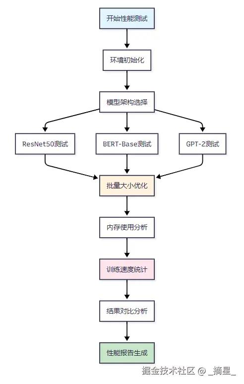 为了充分了解RTX 4090在深度学习任务中的实际表现,我设计了一系列基准测试来评估其在不同模型架构下的性能表现。图1:深度学习性能测试流程图