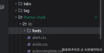 packages/theme-chalk/lib/目录下:index.css- 完整的CSS样式文件fonts/- 相关字体文件