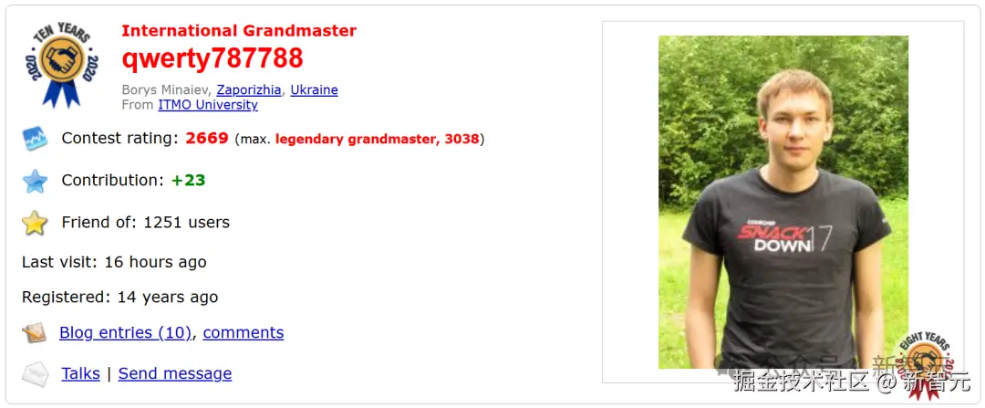 其中有一位,更是 ICPC 的 2015 年世界冠军队伍成员,Borys Minaiev。