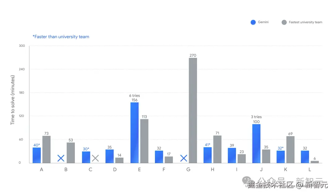 尤其是,谷歌也特地提到,问题 C 所有人类队伍都没有解答出来,而谷歌 Gemini 在半个小时内成功求解!