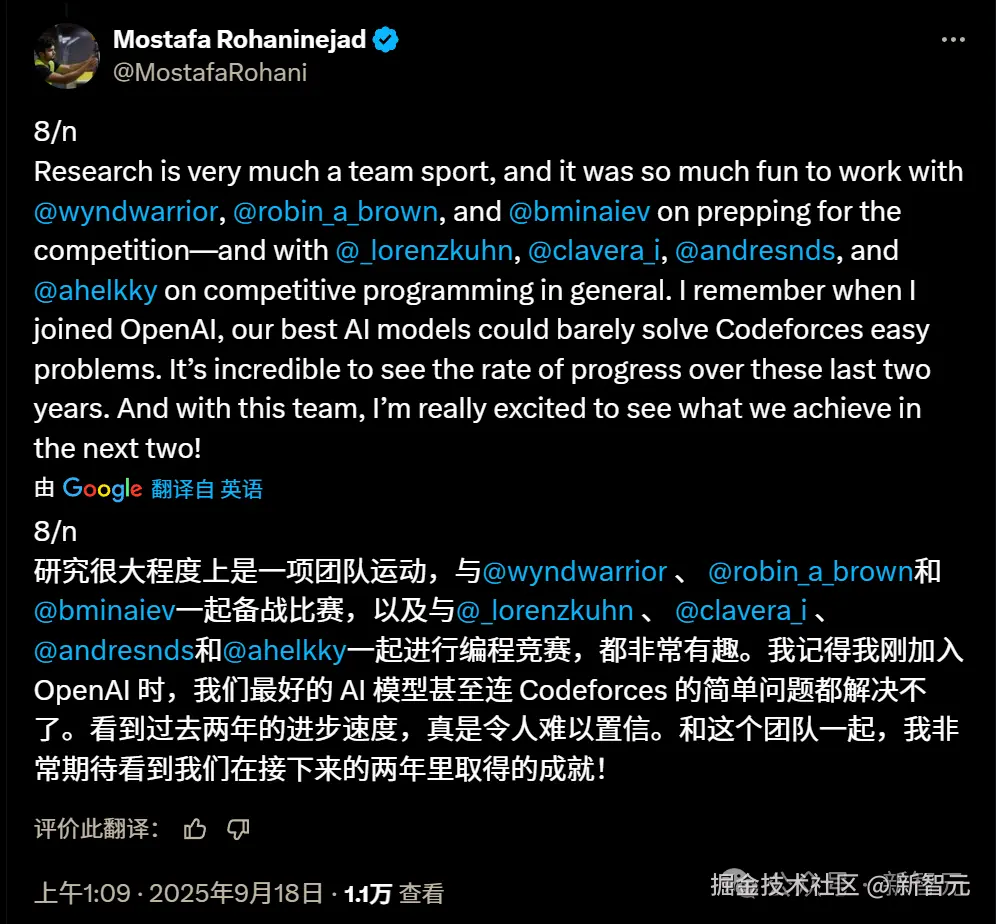真的是令人震撼的时刻,历史性的一夜,AI 在最顶级的编程比赛中彻底的超过了人类!