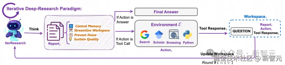- 在每一轮开始,Agent 仅从上一轮的信息中提取最精华的结论,构建一个全新的、精简的工作空间。