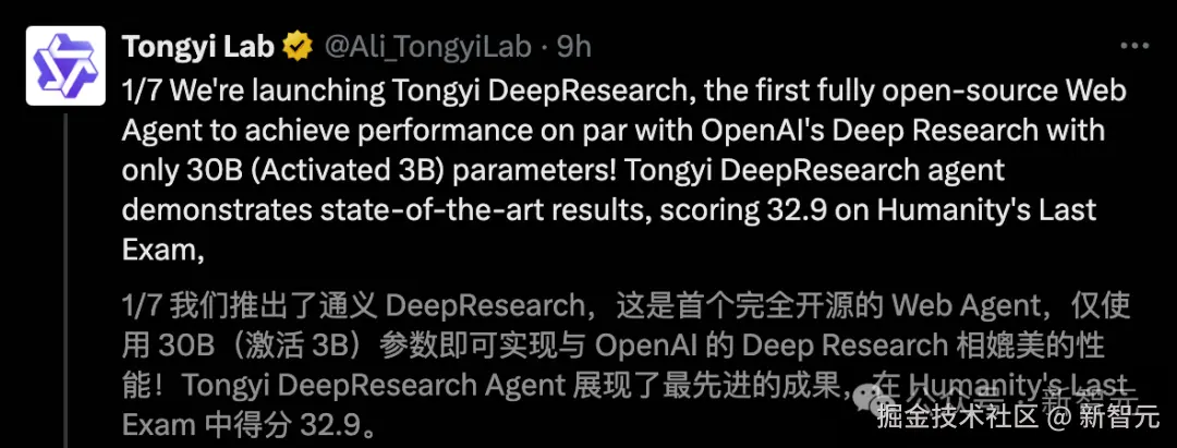 就在昨天,阿里旗下首个深度研究 Agent 模型——通义 DeepResearch 正式开源。