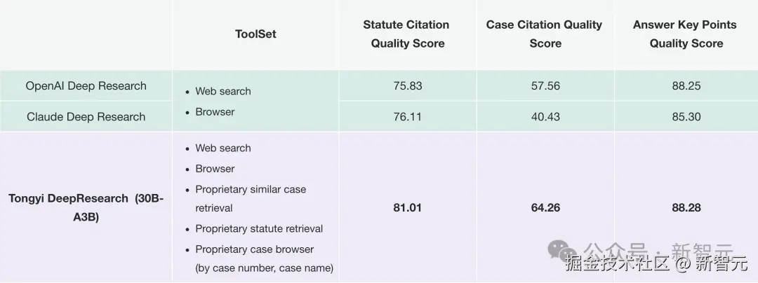 通过 PK,「通义法睿」在三大核心维度——答案要点质量、案例引用质量、法条引用质量上,超越了 OpenAI、Claude 家的 Deep Research。