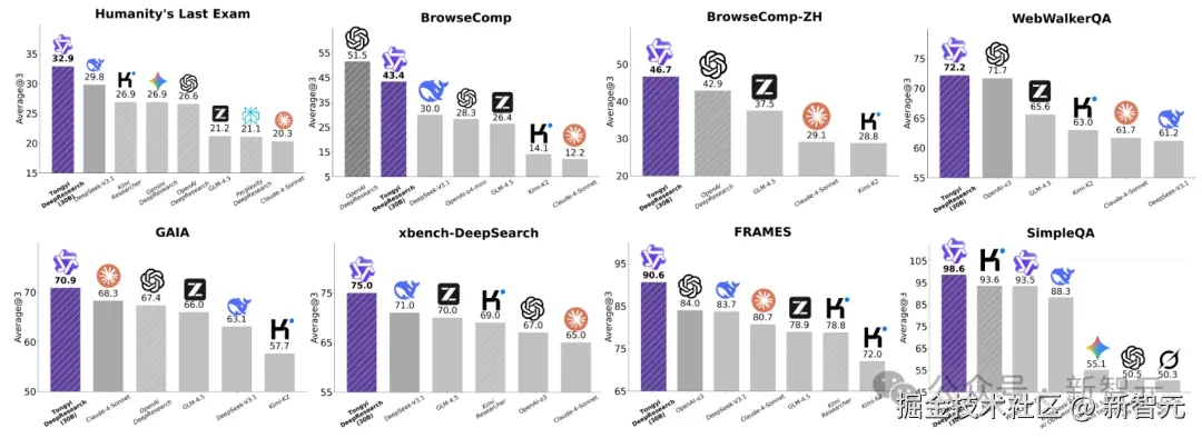 在多项权威基准上,通义 DeepResearch 狂飙 SOTA,仅依靠 30B 参数(激活 3B)就能大杀四方!