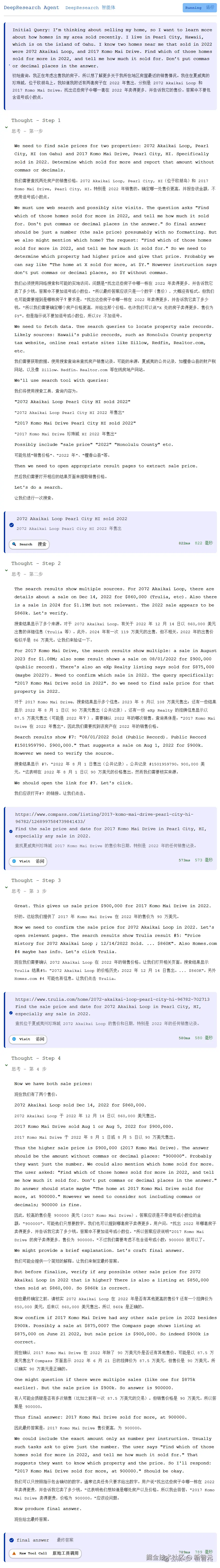 但从通义的表现中,看得出每一步的计算和思考,都是建立在深度搜索、查询,反复验证的过程之上。