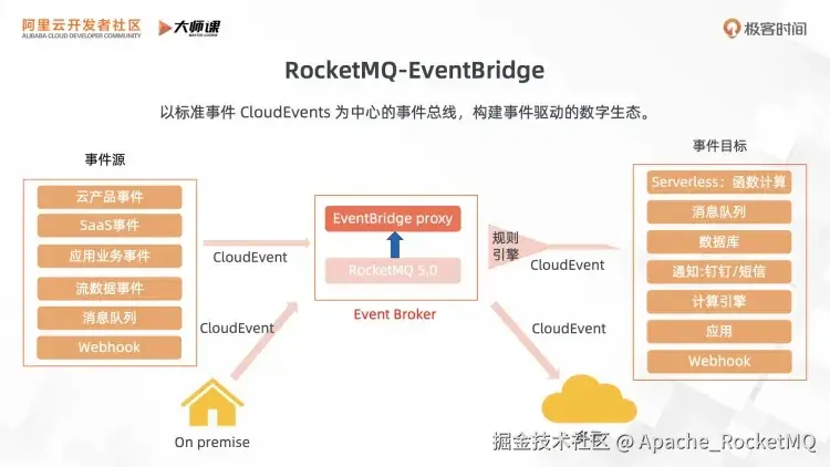 如下图是 RocketMQ 面向 EDA 场景全新推出的产品形态 EventBridge。