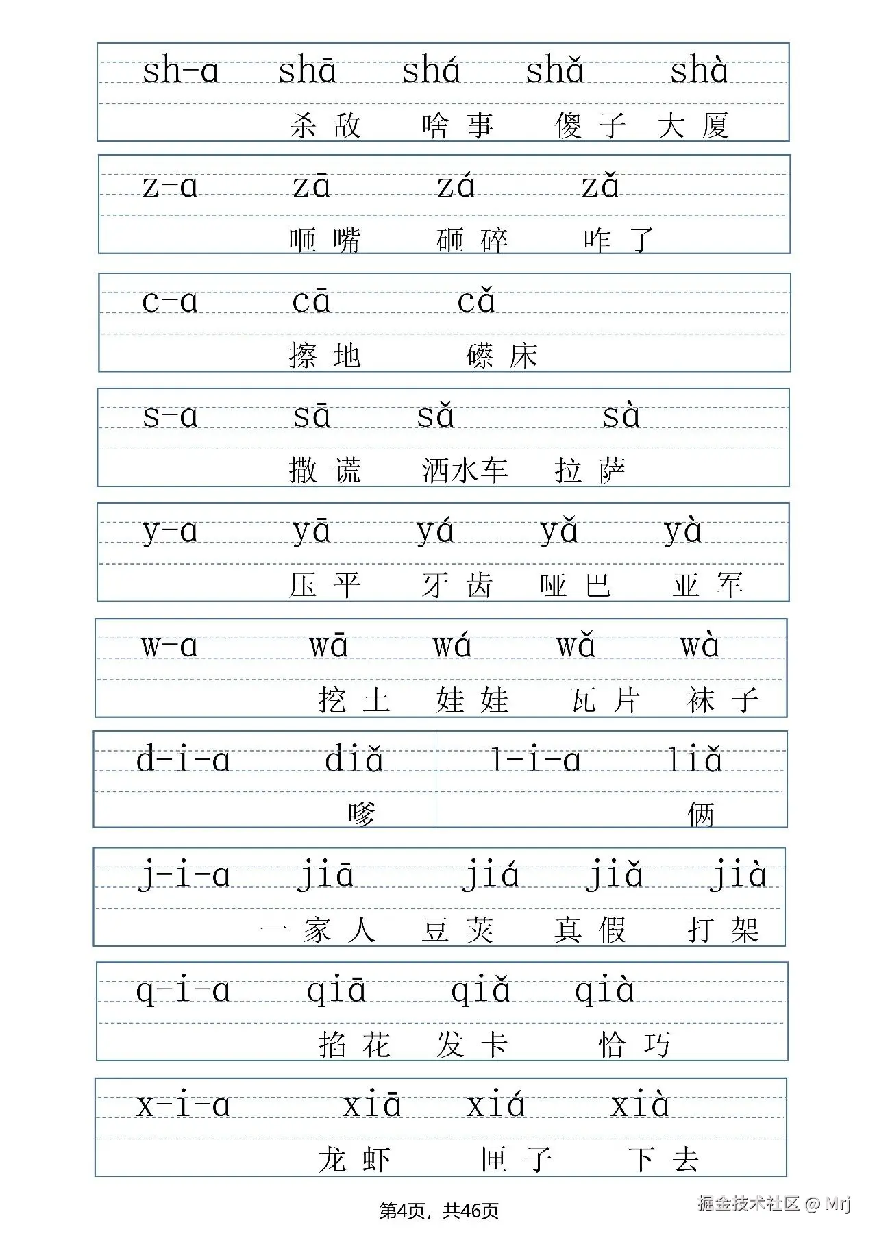 25年一年级上册语文《拼音表拼读训练》,共46页,电子版可下载,拼音是语文学习的基石,这份一上语文汉语拼音拼读训练,帮助孩子熟悉声母、韵母、整体认读音节的拼读规则,为识字和阅读打下坚实基础。需要的家长抓紧打印出来,让孩子读一读,背一背吧