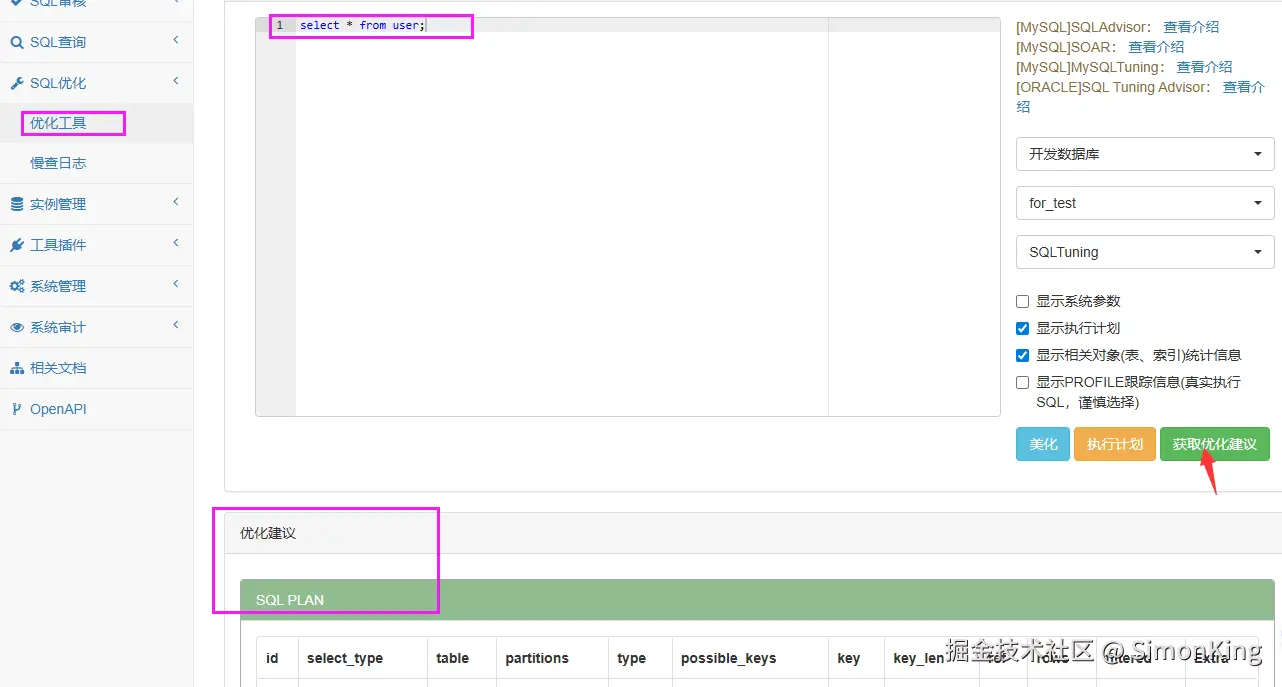 这里可以分析SQL语句并给出建议,这无疑是SQL初学者的福音