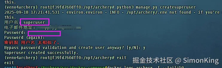 然后就可按照官方文档一步步进行了。过程中可能需要设置用户名和密码,我这里设置的是:superuser/superuser