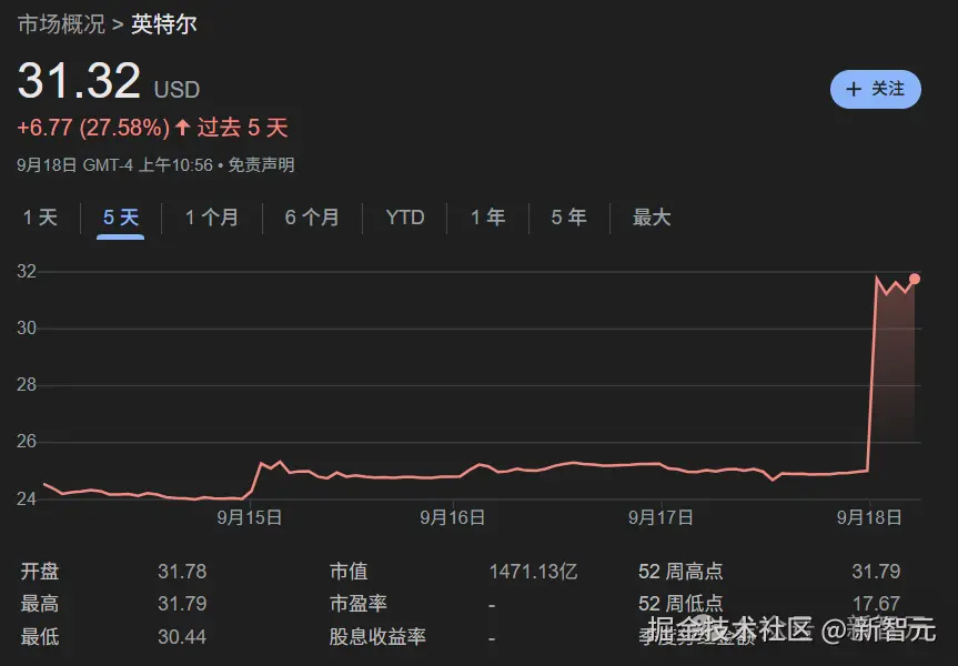 消息一出,英特尔股价瞬间暴涨近 30%。