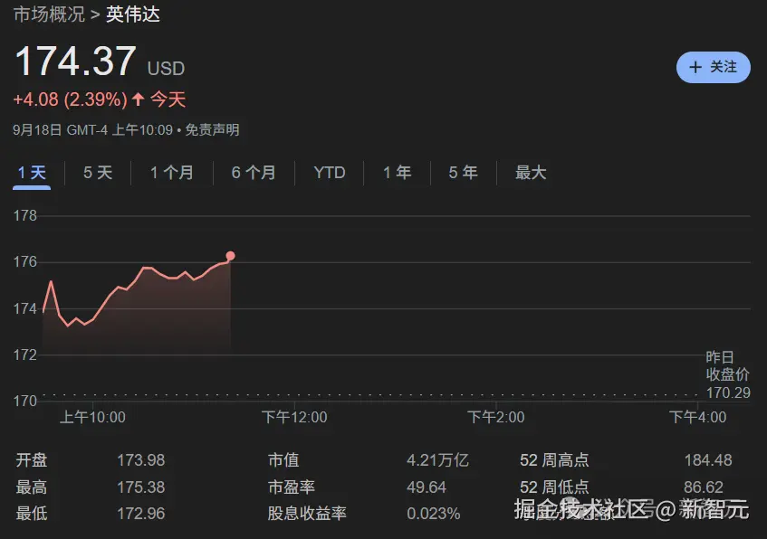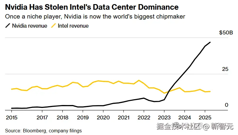 凭借其在 AI 计算领域的绝对统治力,英伟达的市值已达到 4.21 万亿美元,将 1471 亿美元的英特尔远远甩在身后。