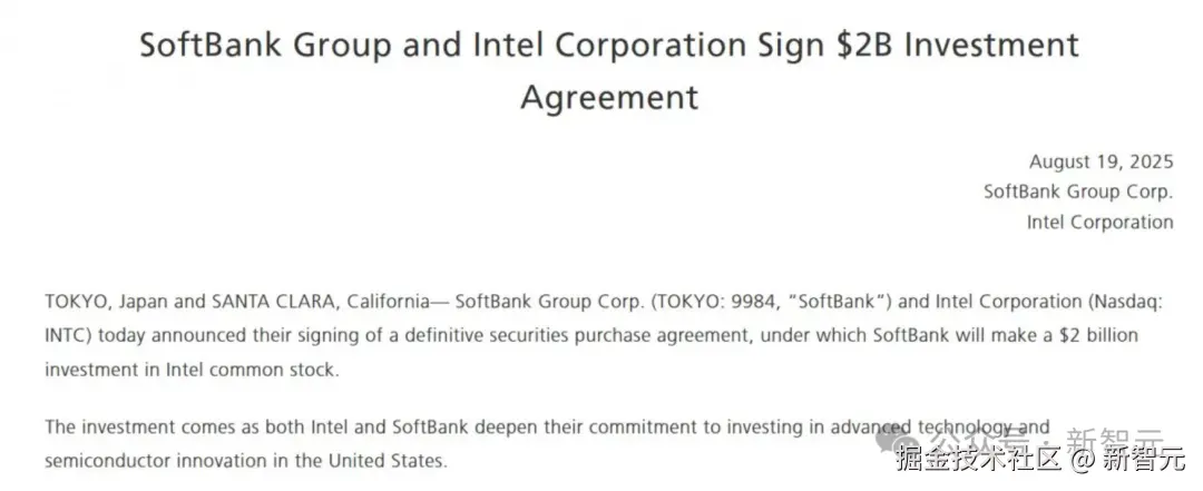 同时,软银集团也与英特尔联合声明显称,软银将向英特尔投资 20 亿美元,以每股 23 美元的价格收购英特尔普通股。