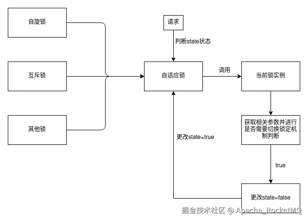 通过 ABS 锁,我们还能解决开源使用者对锁的抉择问题:在 RocketMQ 消息投递时存在两种锁定机制,SpinLock(swapAndSet),以及 ReentrantLock 互斥锁,但并无文档对其进行分析使用的场景。所以我们通过 ABS 锁对其进行整合,达到最优状态并且完成服务端的锁定机制闭环,不需要用户去决定当前场景锁定机制的选取,自然而然地根据争抢情况对锁参数进行微调。ABS 锁可以根据运行时条件动态调整其行为,例如锁争用级别和争用同一资源的线程数。这可以通过最大限度地减少与锁获取和释放相关的开销来提高性能,尤其是在高争用的情况下。通过实时监控系统的性能指标,ABS 锁可以在不同的锁定策略之间切换。