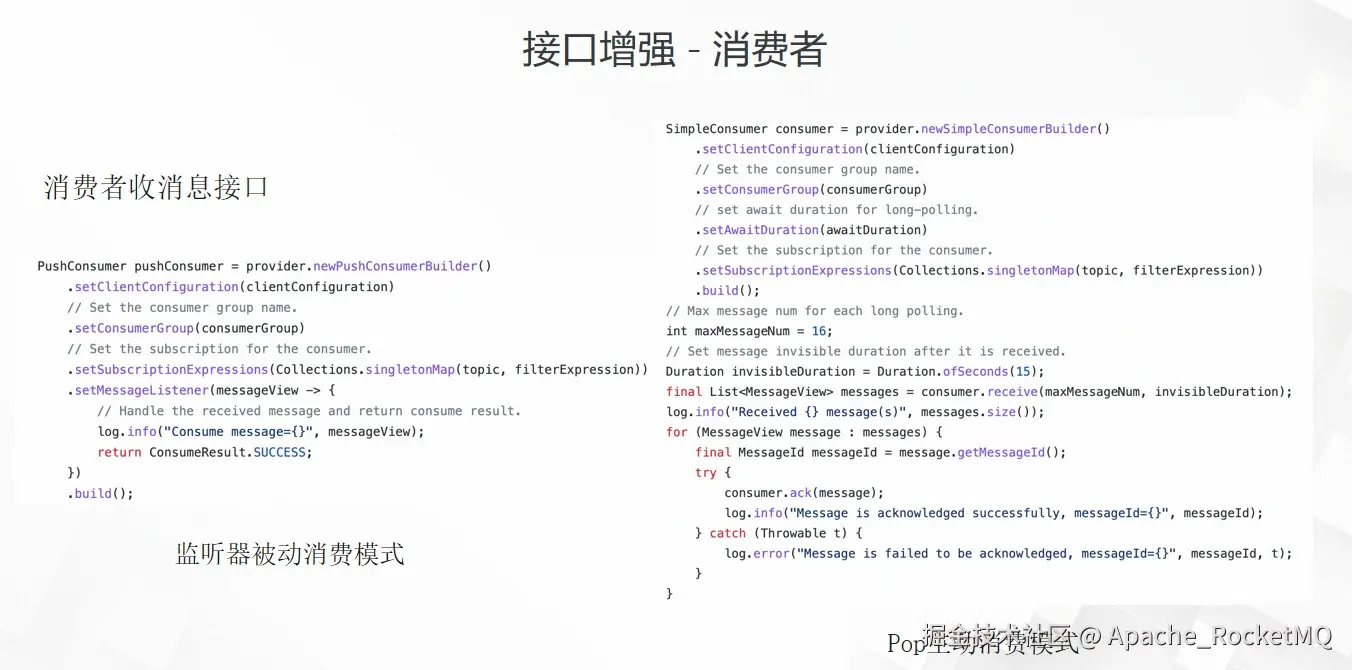 在消费者的接口方面也提供了两种方式: