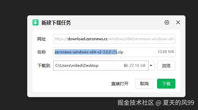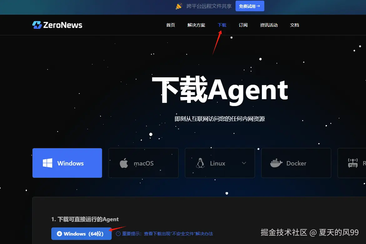 然后,访问 ZeroNews 官网的Agent页面,将 ZeroNews Agent zeronews.exe 下载到指定的目录。