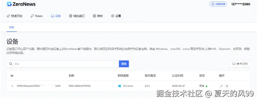 ZeroNews 启动后,您可以在 ZeroNews 平台上查看设备状态,确认其已成功上线。